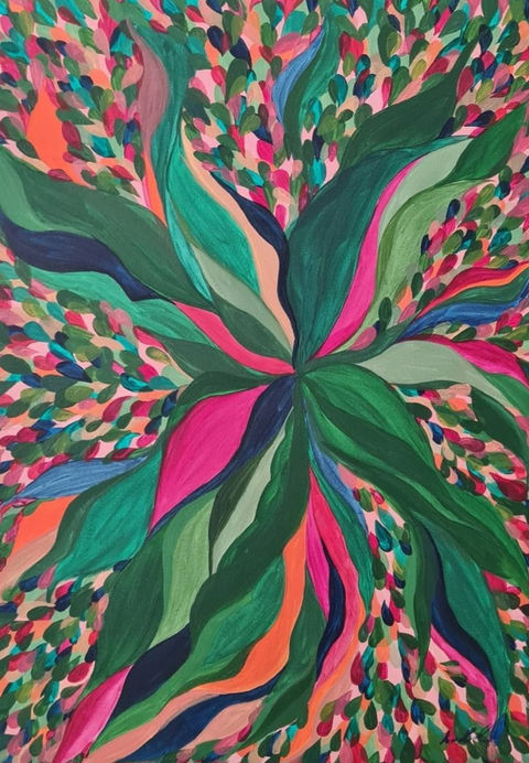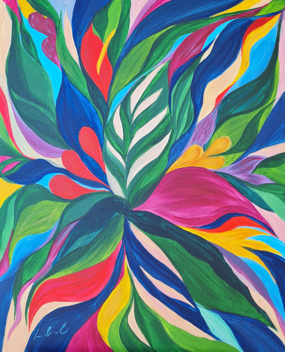 Meu trabalho é marcado por cores vibrantes e formas orgânicas inspiradas na natureza, em especial, em flores, folhas e no mar. Trabalho em diferentes mídias, com carinho especial pelas pinturas em tela, aquarelas e ilustrações infantis encorajadas pelas minhas filhas, Isabel e Joana.